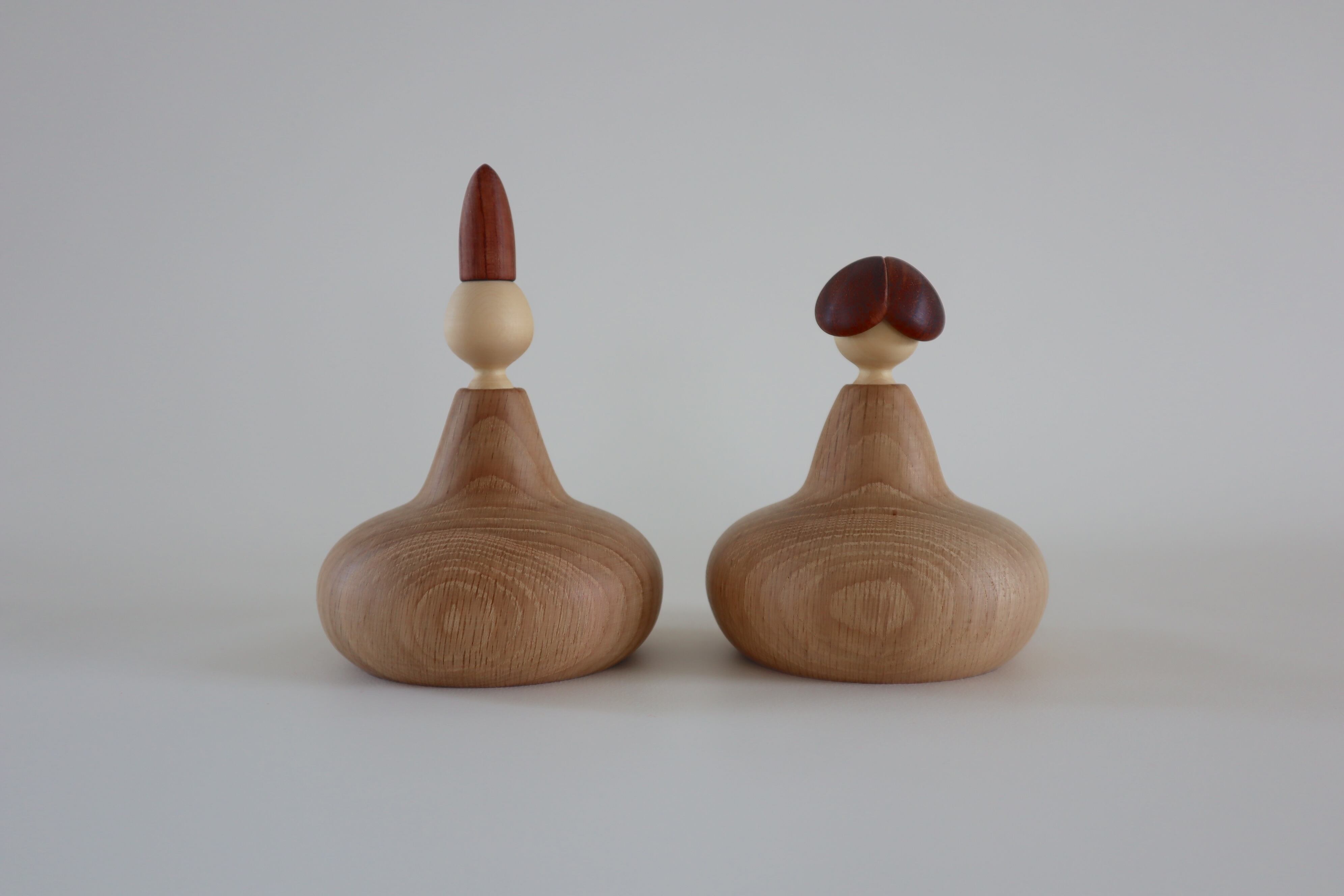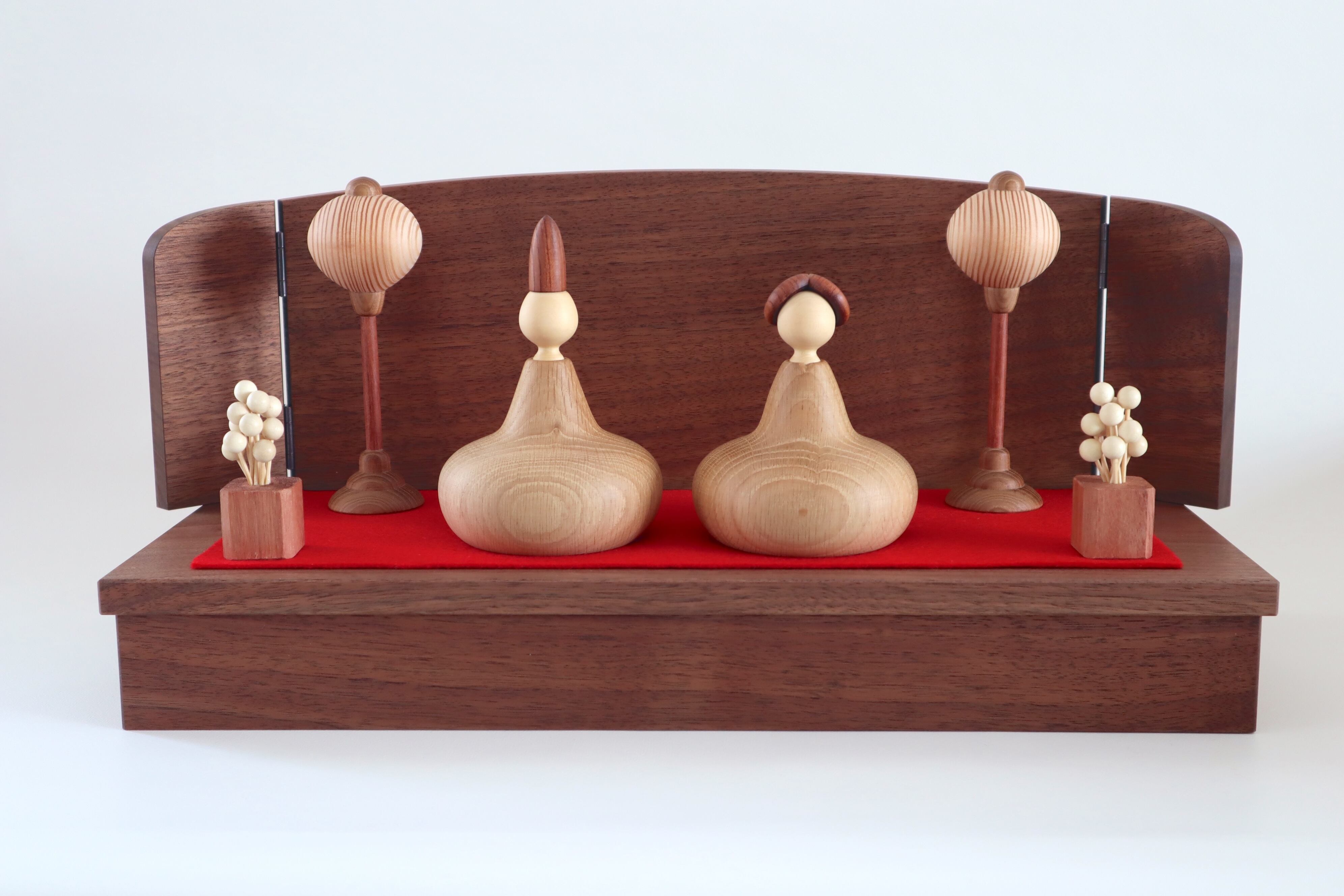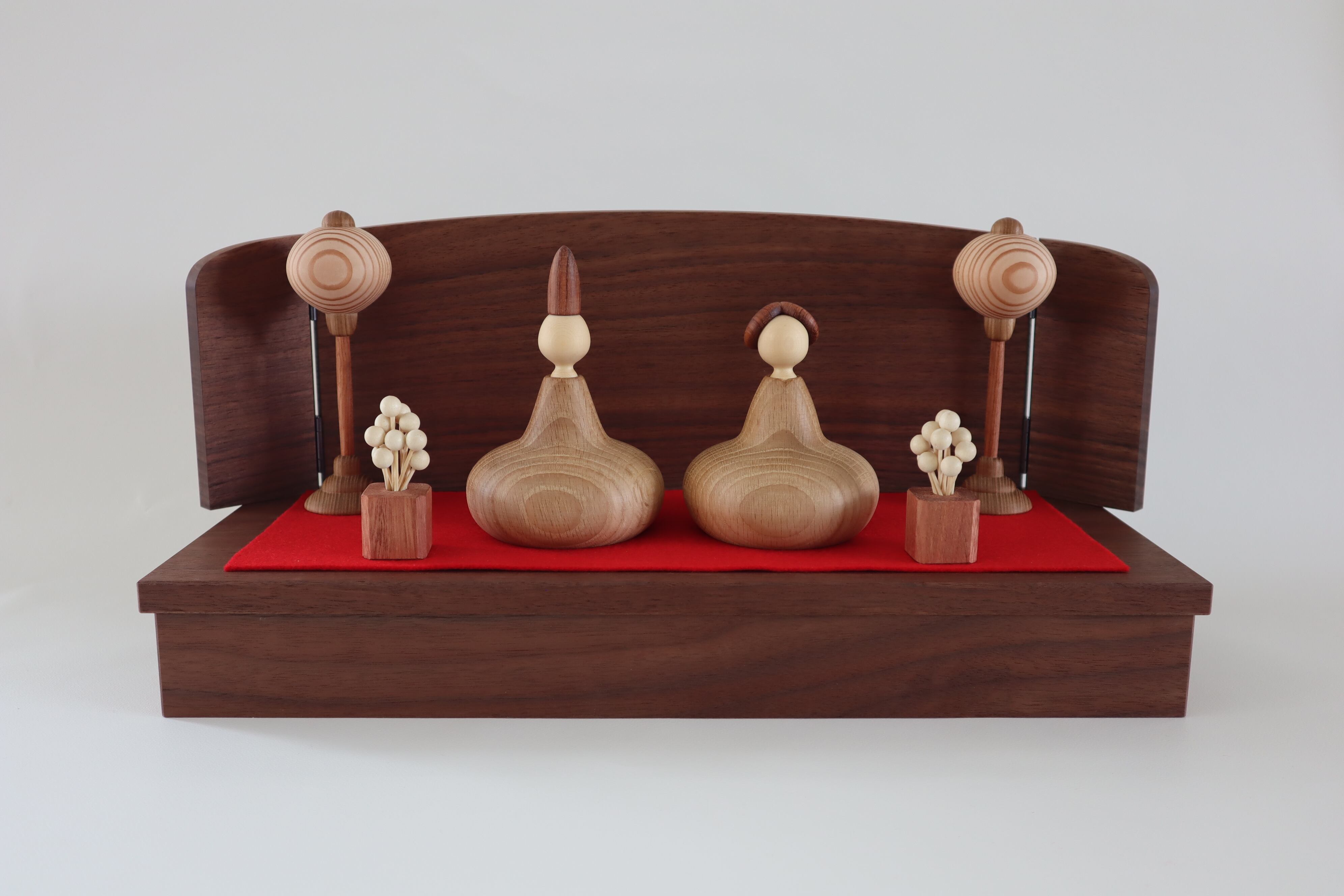 旭川にて旋盤職人として木のおもちゃや節句の飾りを製作し活躍した三浦木地代表 三浦忠司作のおひなさまです。2025年4月に惜しまれつつ引退されましたが、最後に限定品として、既存のおひなさまより一回り大きいおひなさまを製作しました。