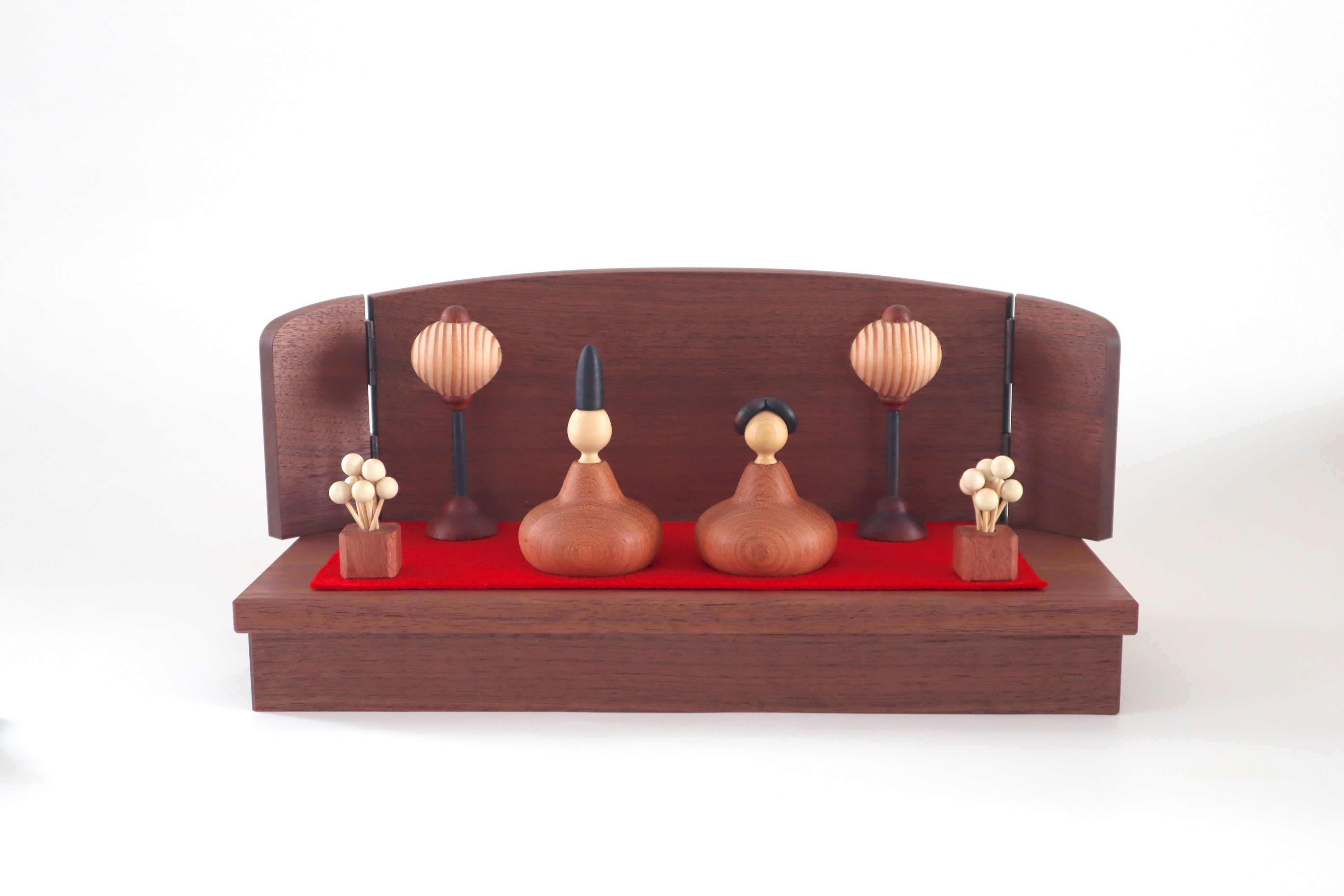 旭川にて旋盤職人として木のおもちゃや節句の飾りを製作し活躍した三浦木地代表 三浦忠司作のおひなさまです。2025年4月に惜しまれつつ引退されましたが、最後に限定品として、高級材カリンを使用したおひなさまを製作しました。