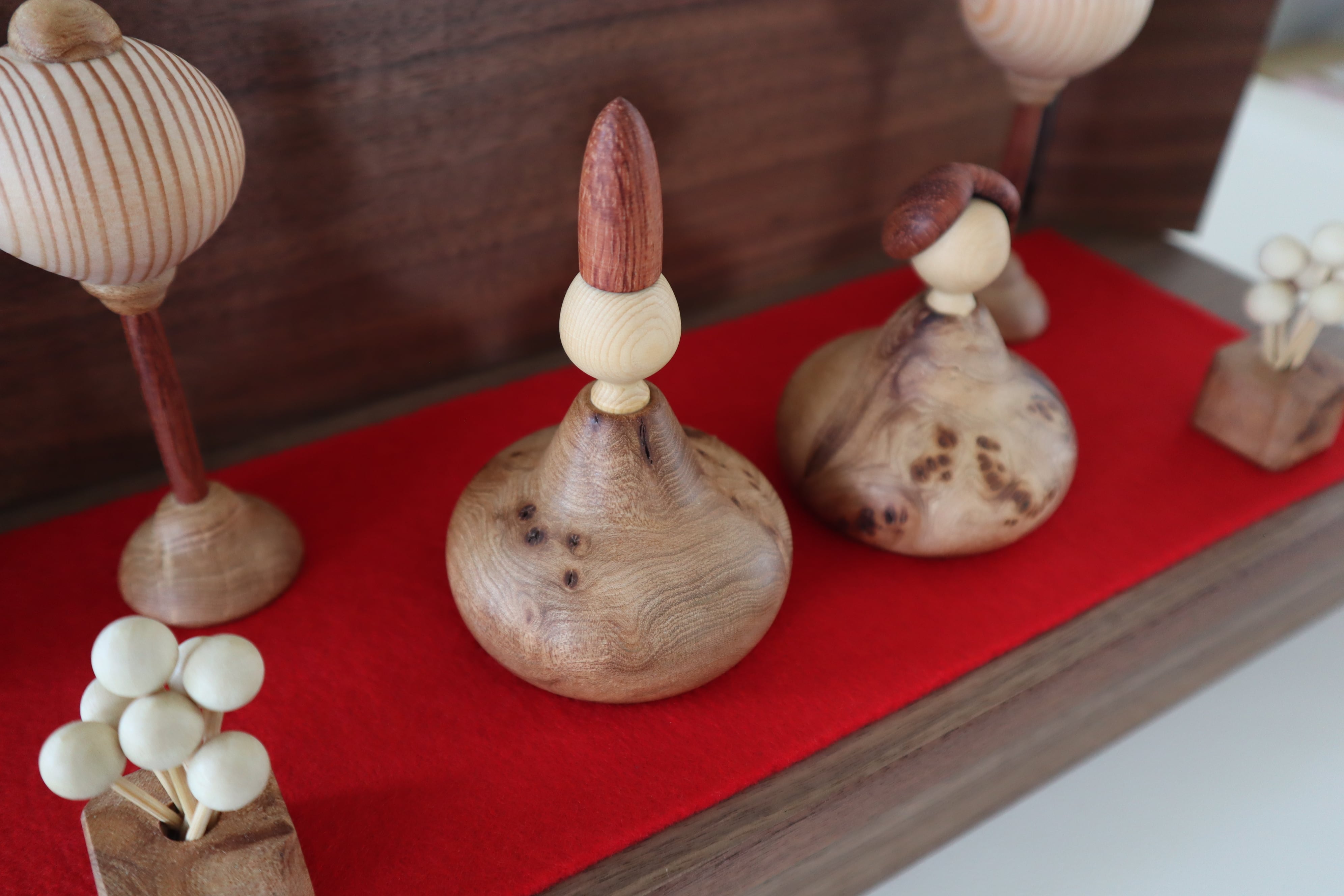 旭川にて旋盤職人として木のおもちゃや節句の飾りを製作し活躍した三浦木地代表 三浦忠司作のおひなさまです。2025年4月に惜しまれつつ引退されましたが、最後に限定品として、希少なタモコブを使用したおひなさまを製作しました。