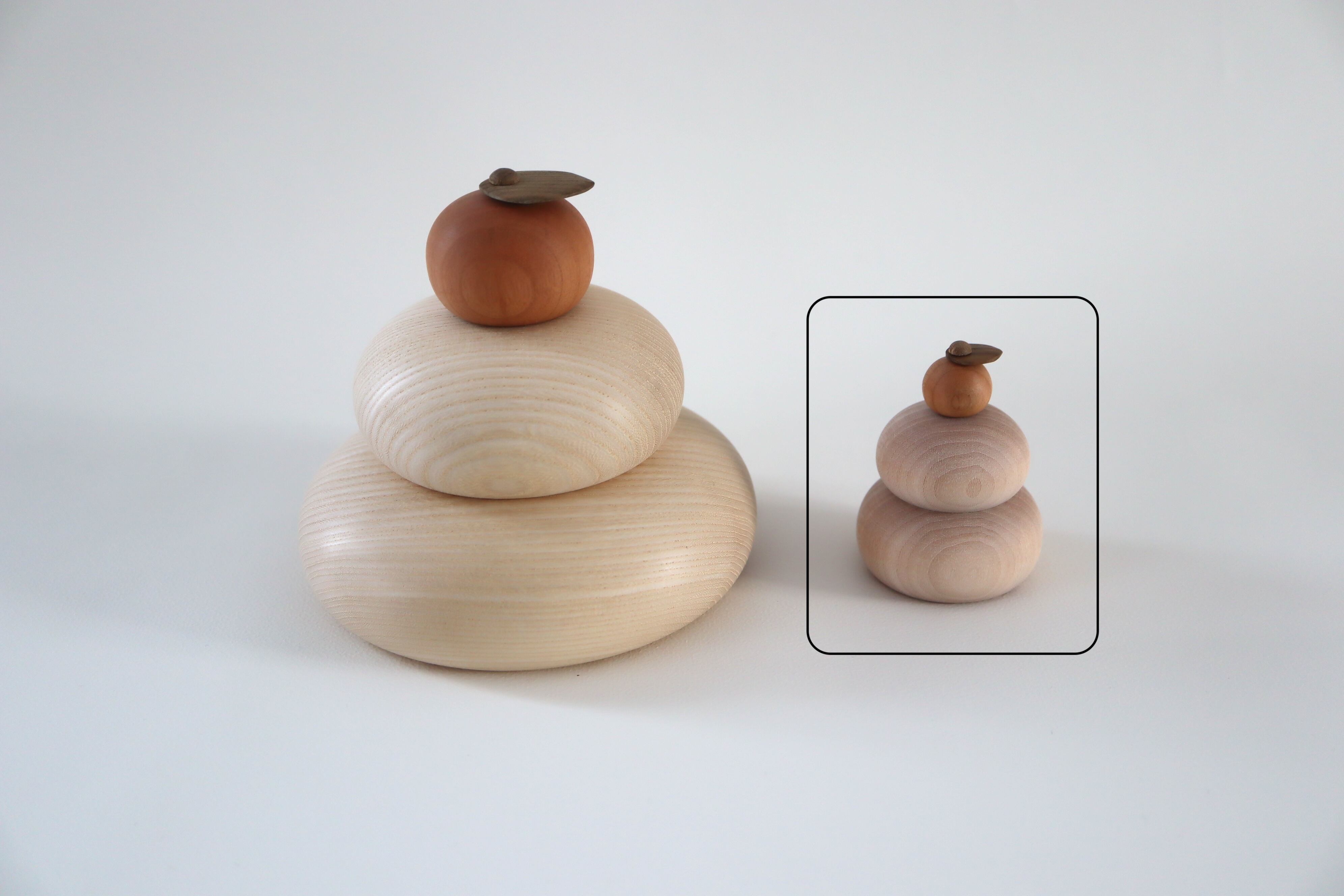 お正月といえば鏡もち。こちらの鏡もちミニは全て木製で、小ぶりですが存在感があります。