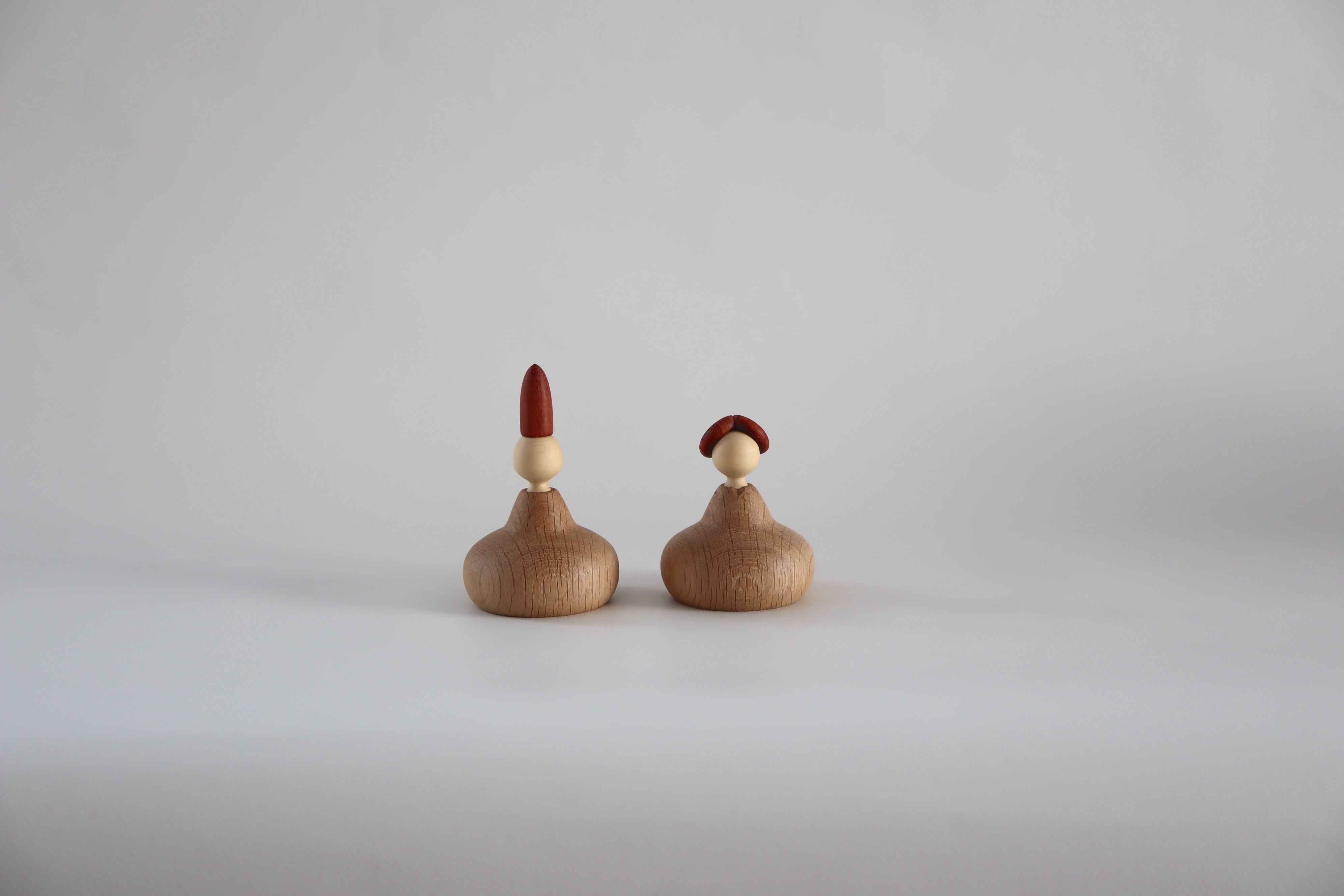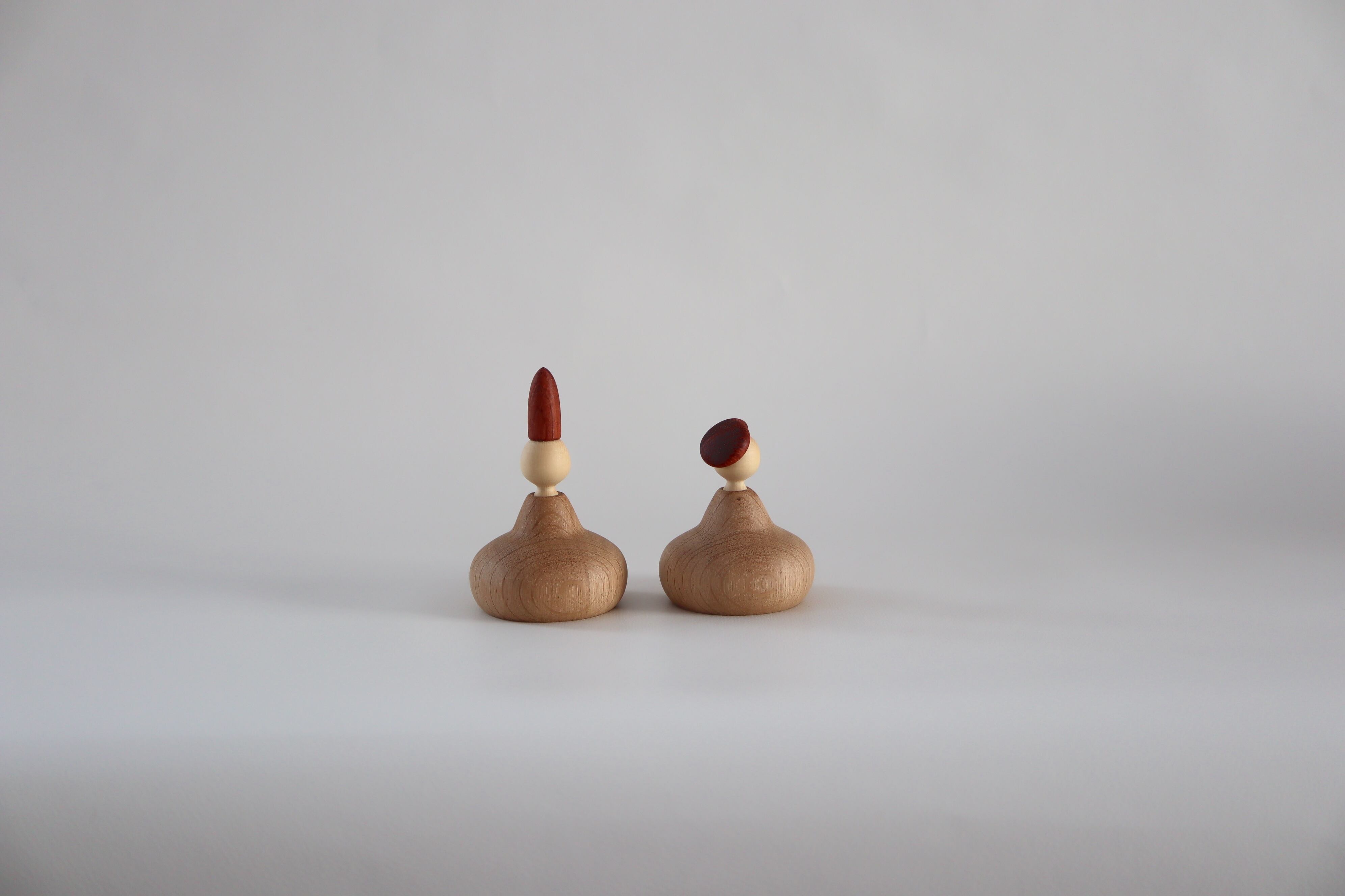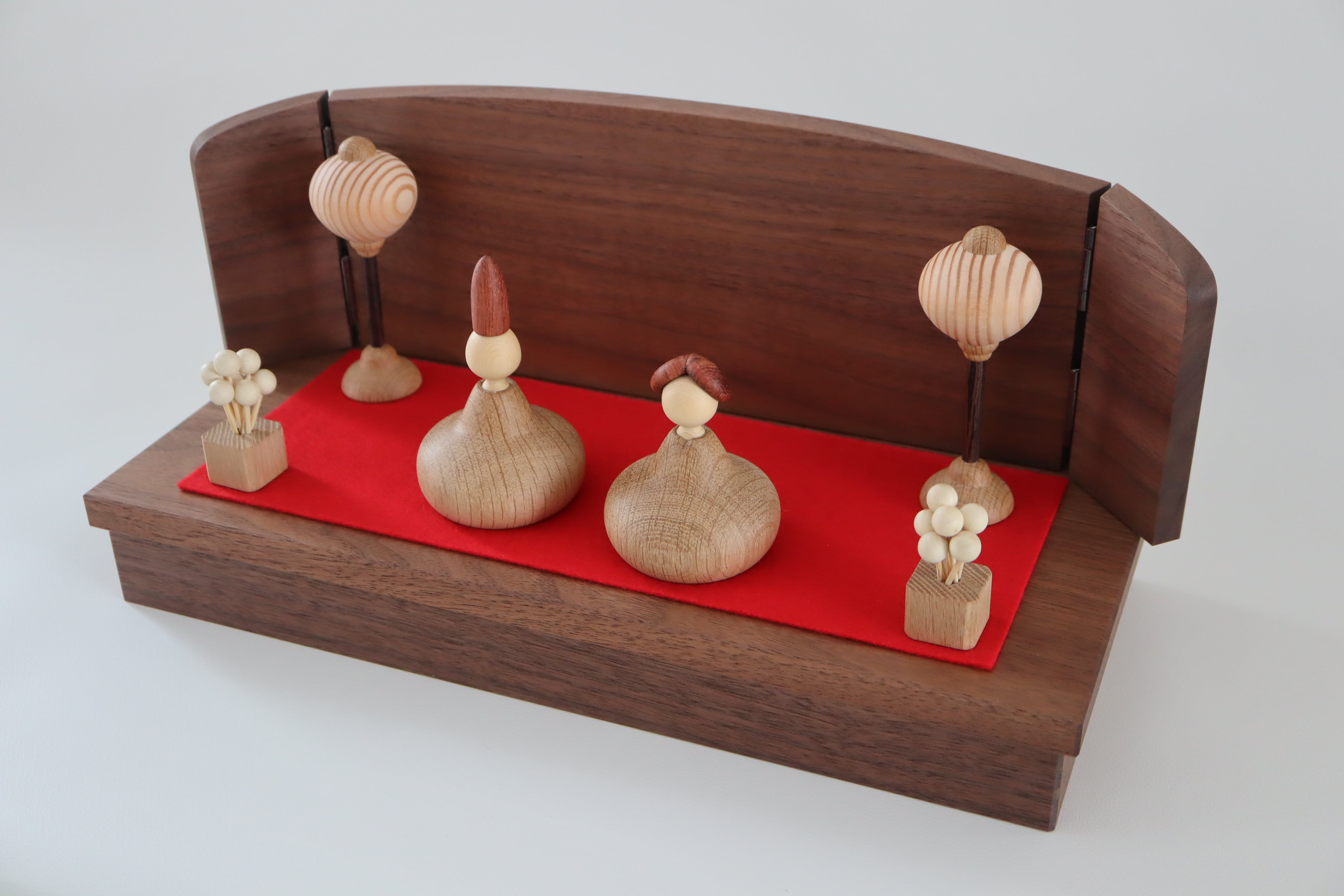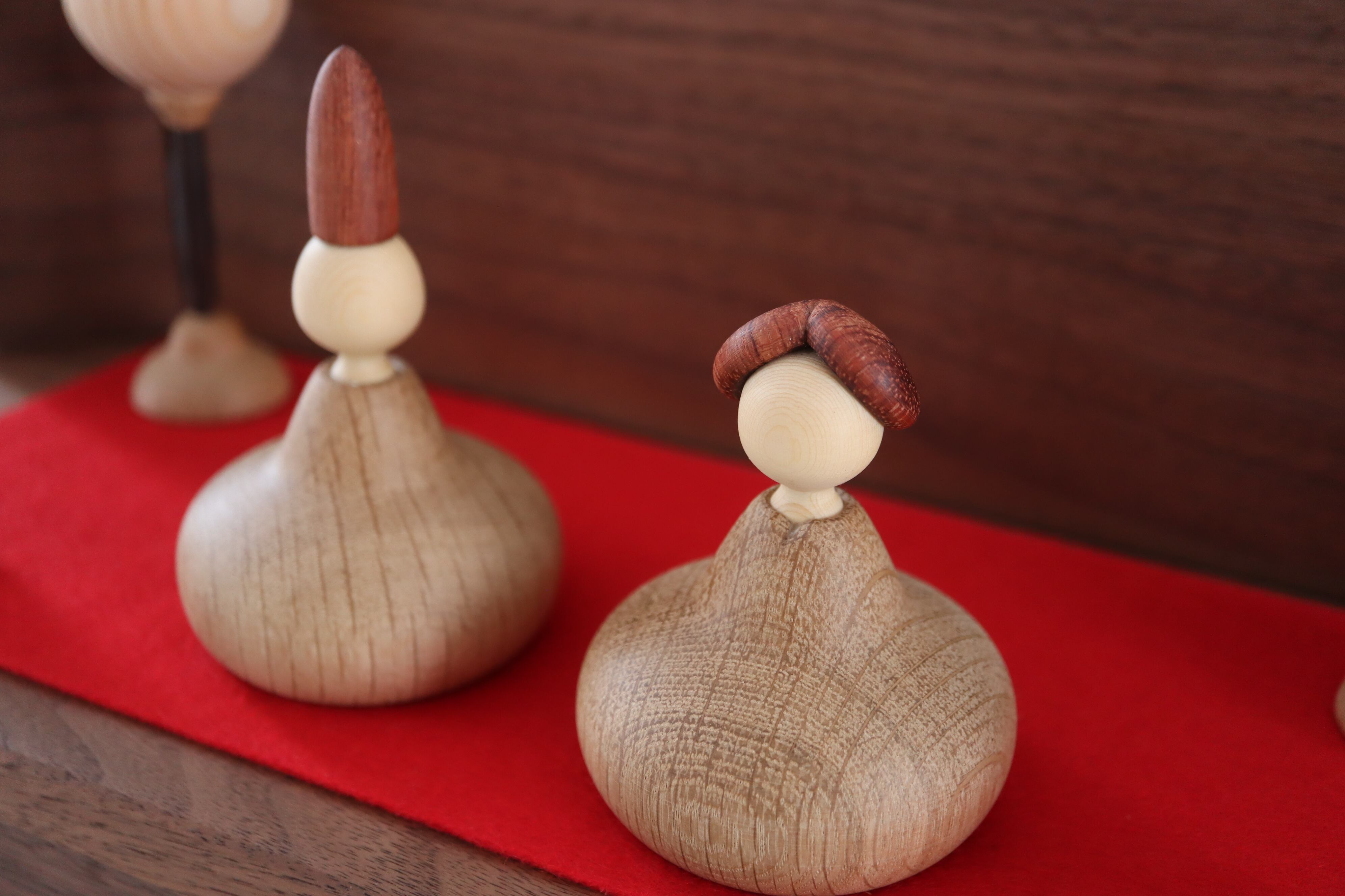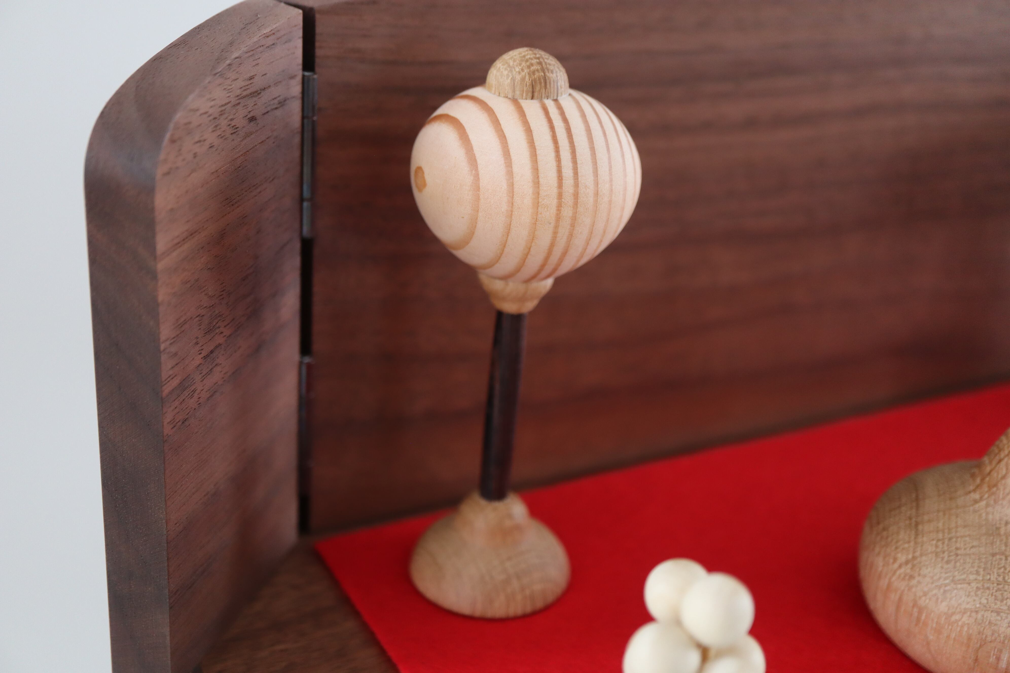 旭川にて旋盤職人として木のおもちゃや節句の飾りを製作し活躍した三浦木地代表 三浦忠司作のおひなさまです。2025年4月に惜しまれつつ引退されましたが、good homemade創業以来台座を製作している関係から最後の作品を当工房にて扱わせていただく事となりました。