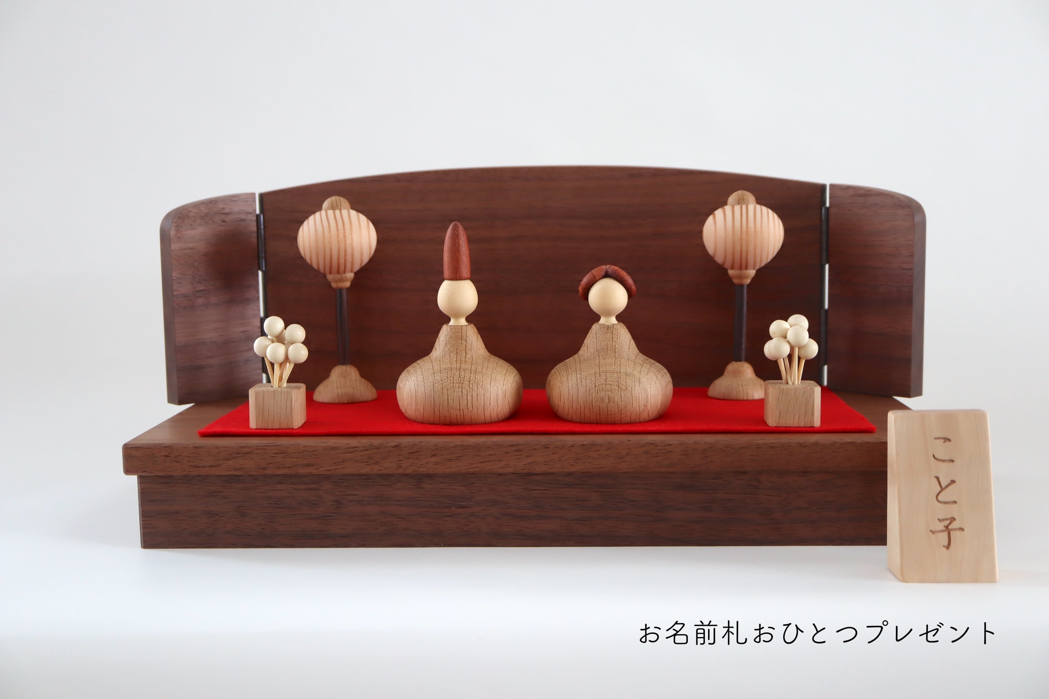 また、ご購入の方へお名前札をおひとつプレゼントしております。ご希望の方はオプション選択にてご希望のお名前をお知らせください。ご注文後当店より原稿確認のメールをさせていただきご了承後1週間ほどで完成予定ですので、お雛様に同梱し出荷いたします。