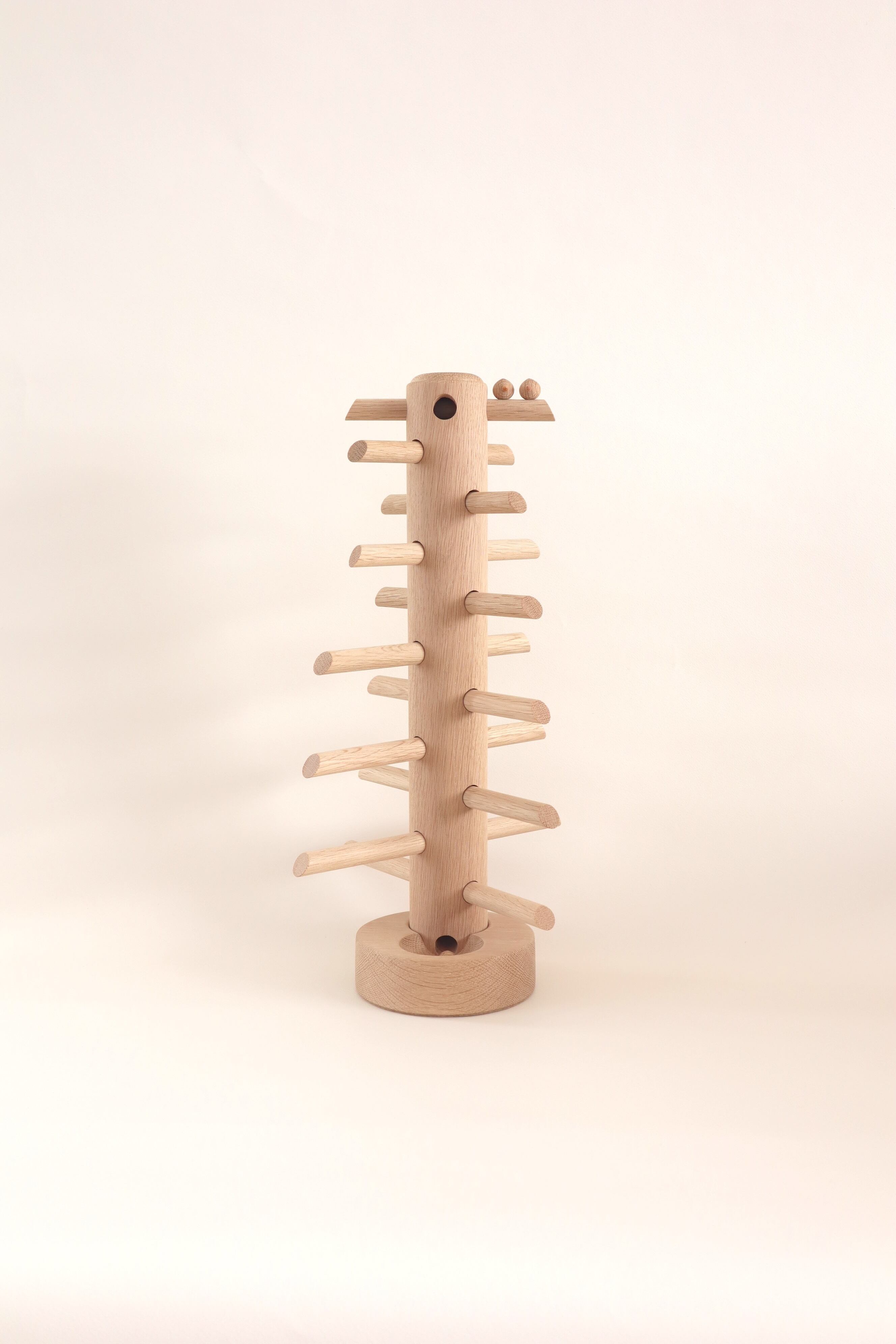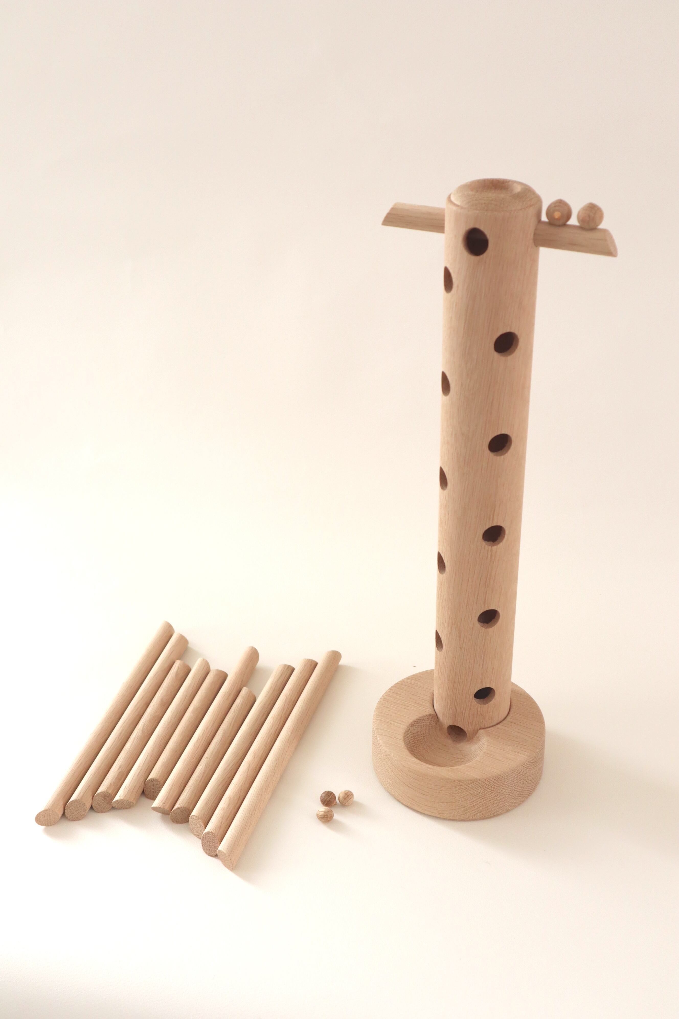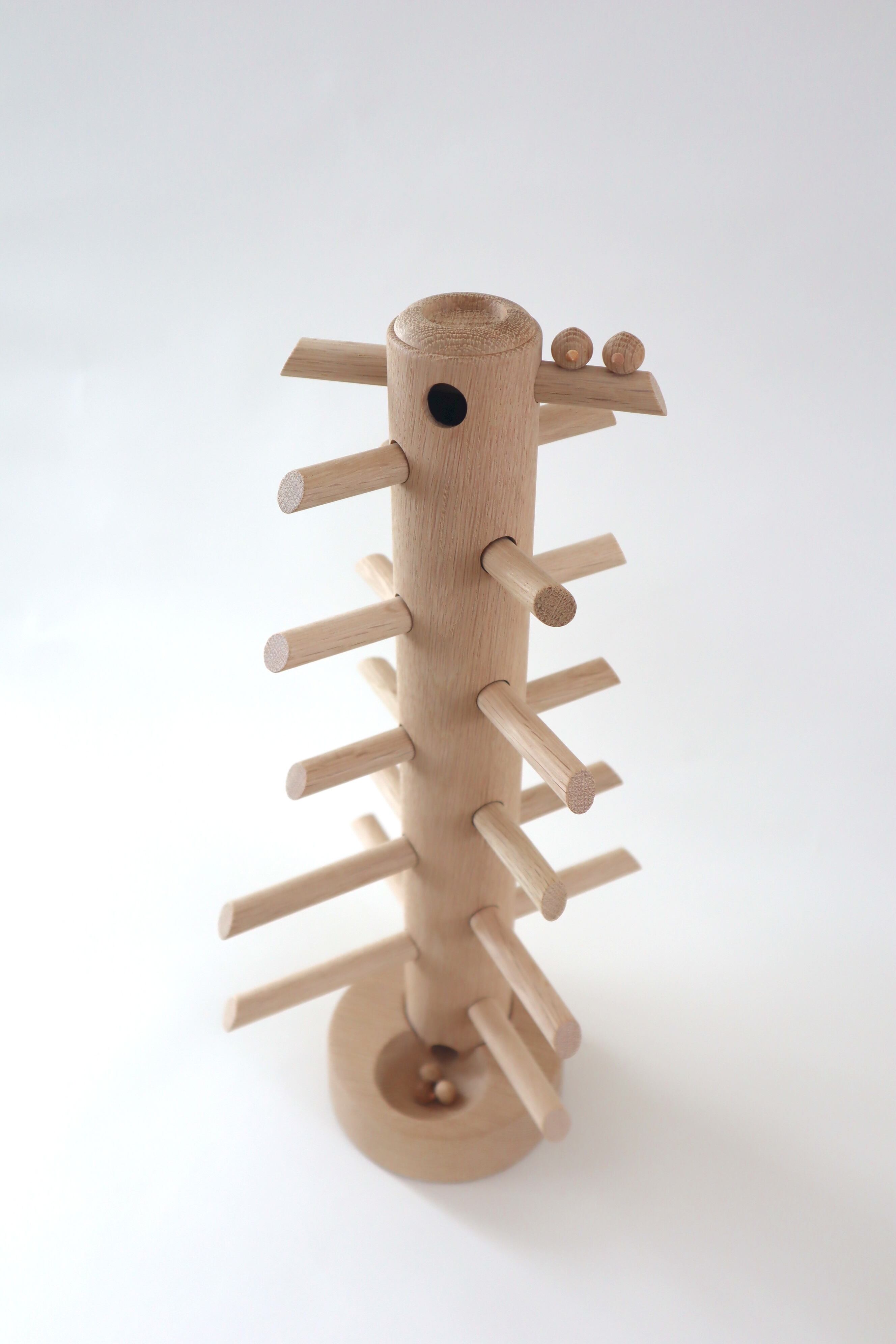 北海道旭川にて旋盤職人として木のおもちゃを製作し活躍した三浦木地代表 三浦忠司 作の音の鳴る木のおもちゃ、森のさえずりNo.35です。三浦氏は2025年4月に惜しまれつつ引退されましたが、最後の製作品をgood homemadeにて取り扱わせていただく事となりました。